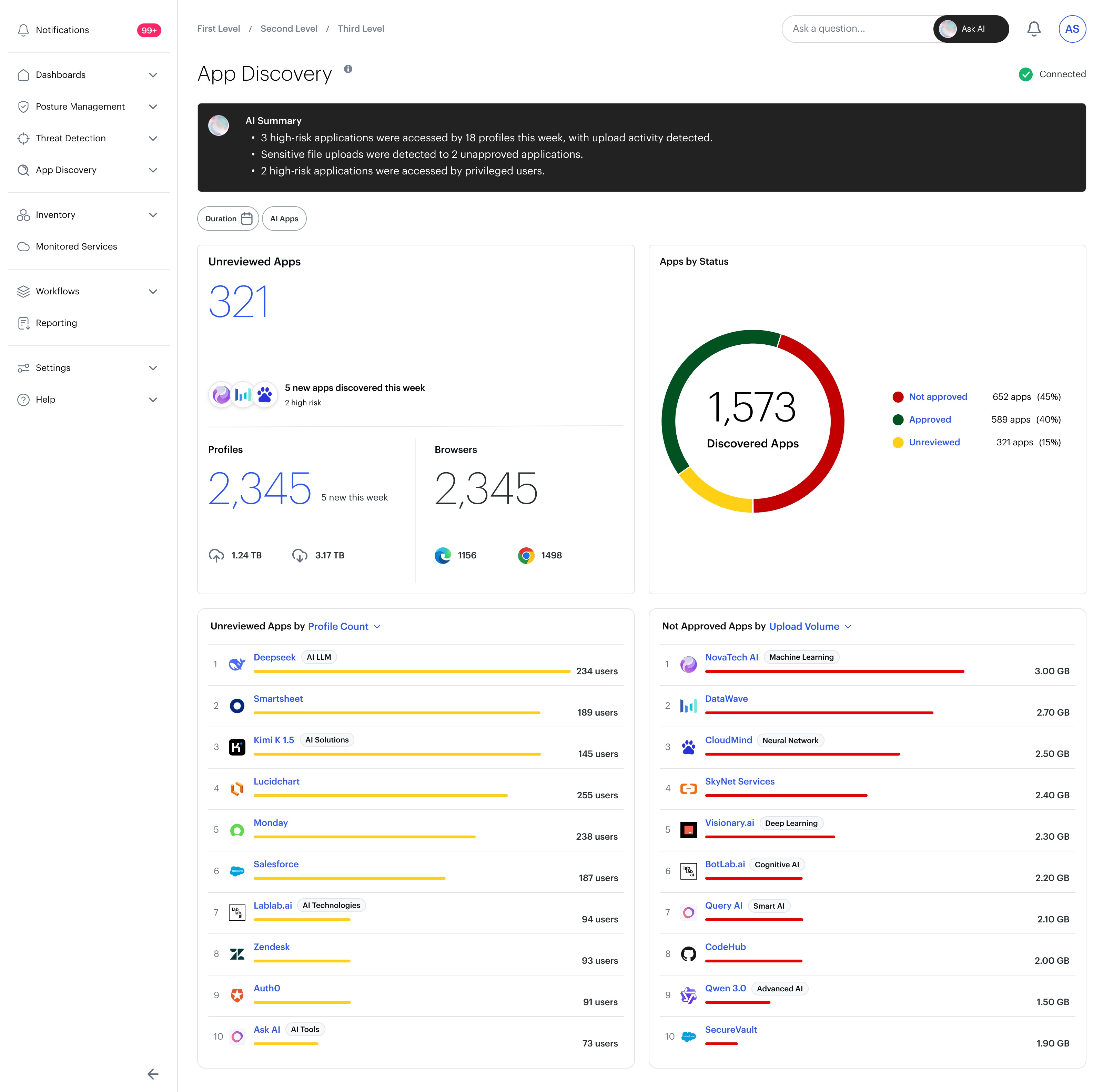 Enterprise security teams often operate with fragmented visibility into SaaS usage, making it difficult to identify shadow IT, assess risk, and act quickly.
